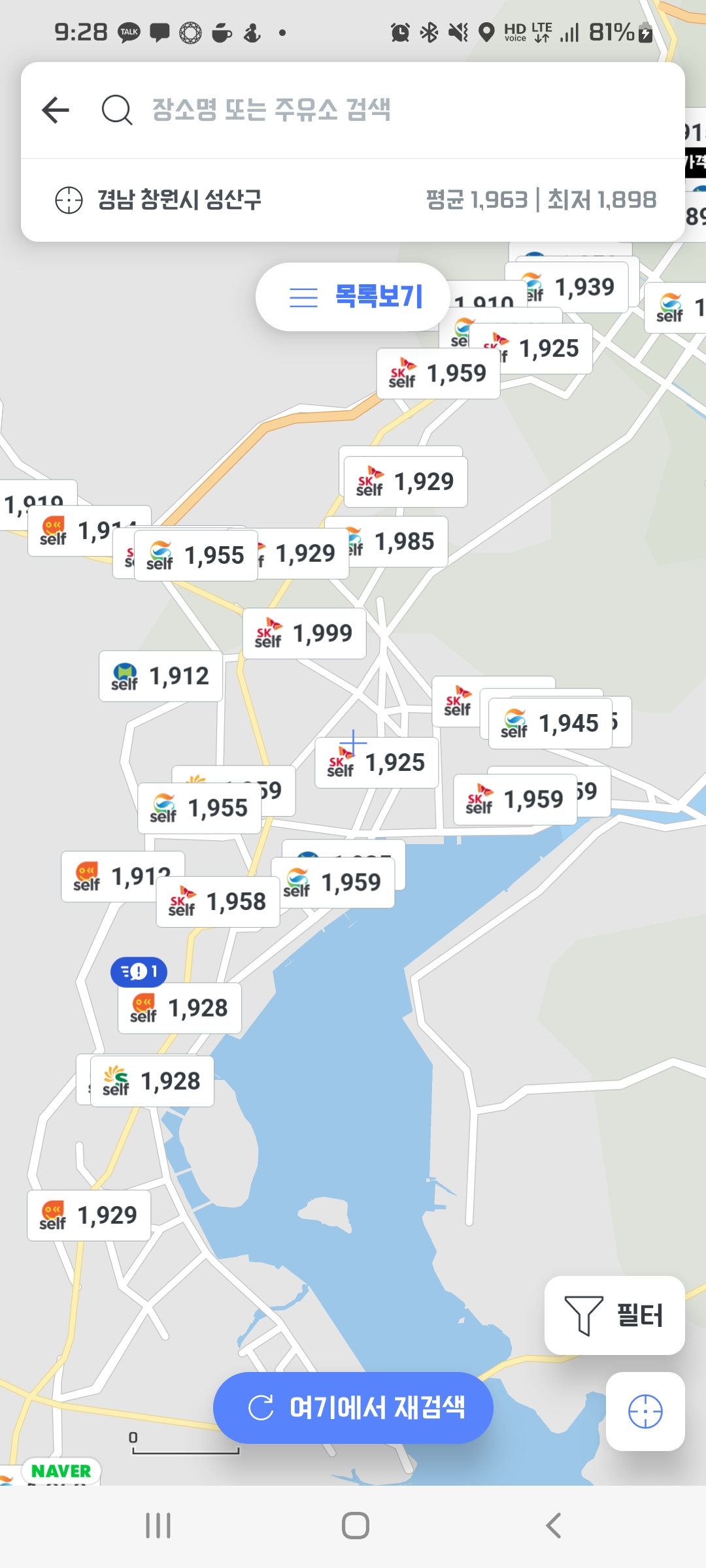 3. 지역별 기준으로 검색을 하면 저렴한 주유소 찾기가 가능합니다.