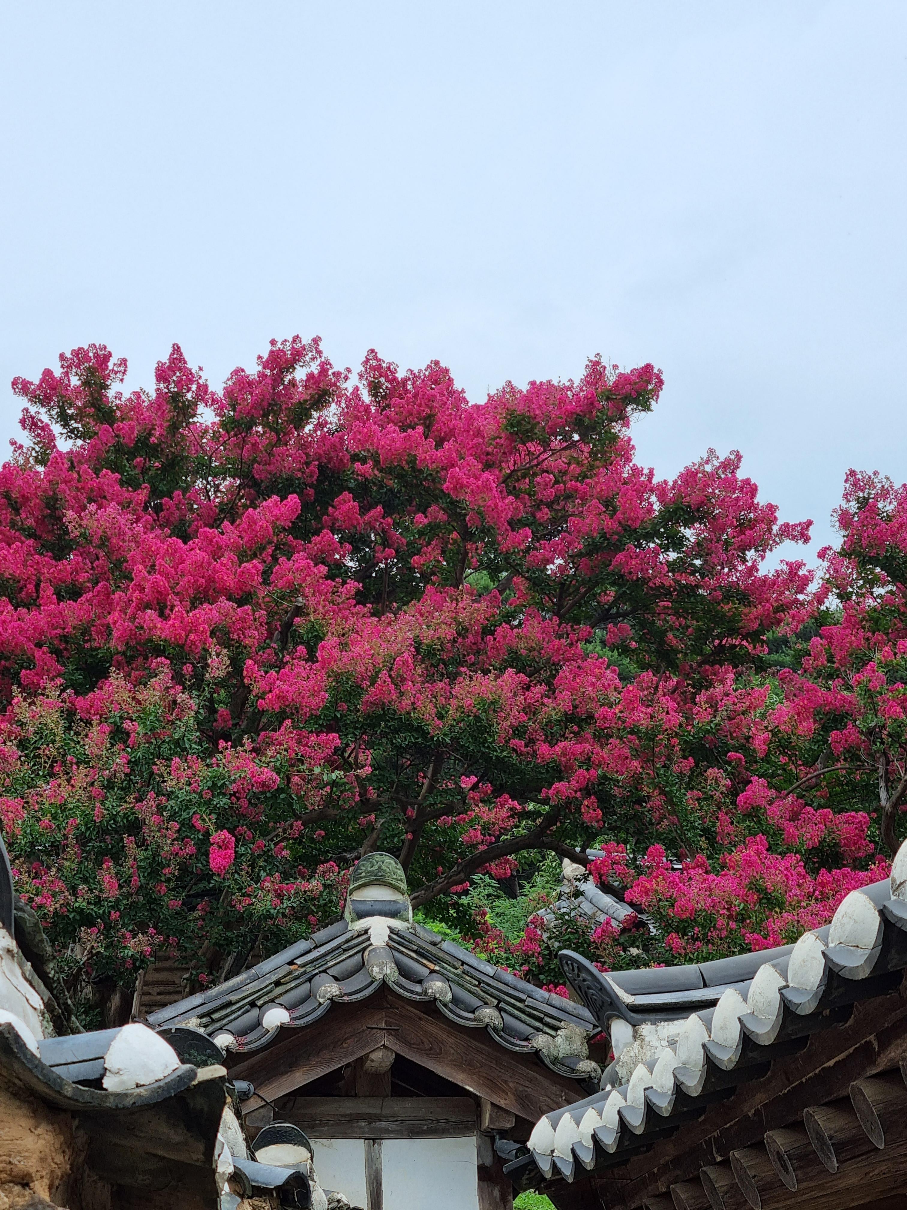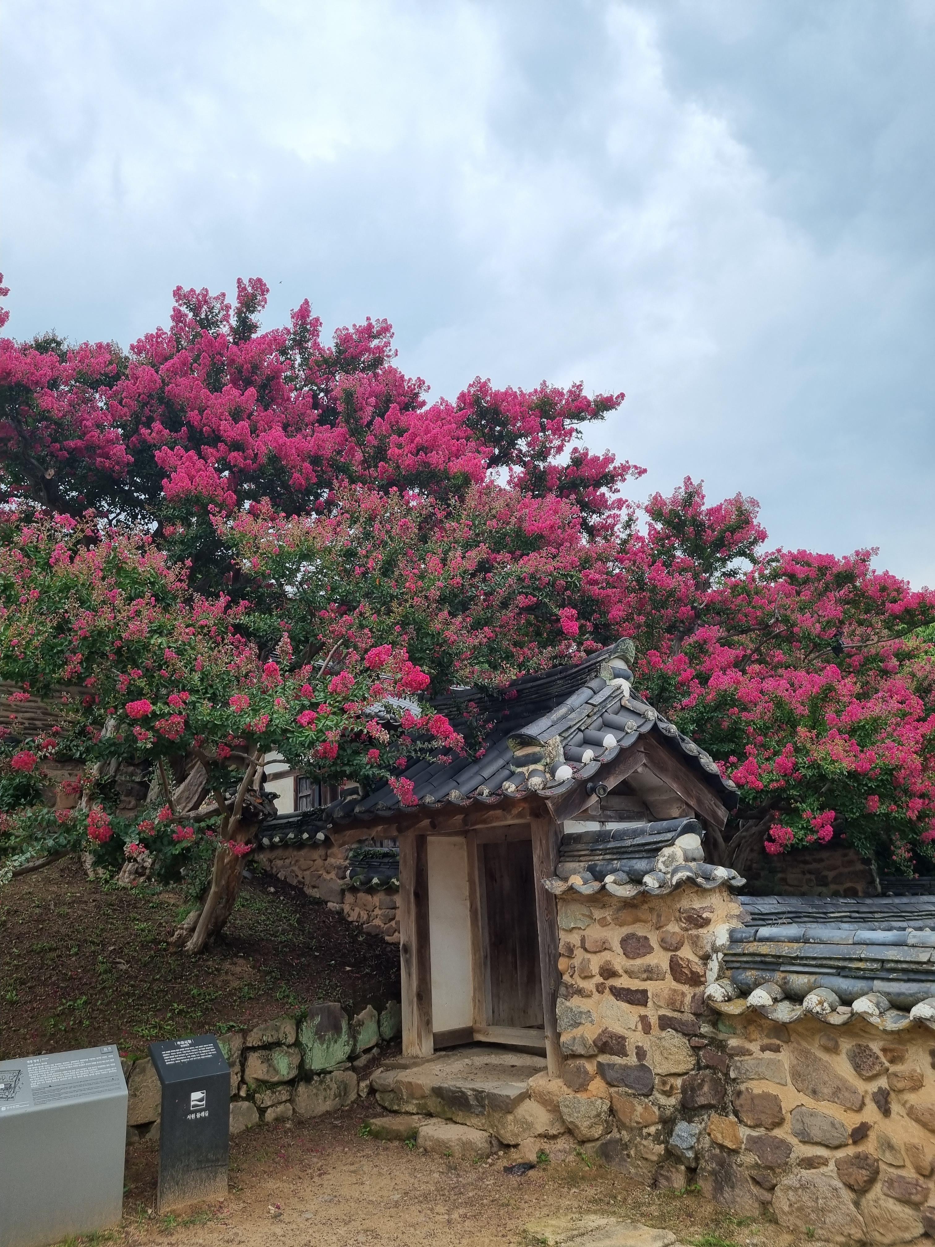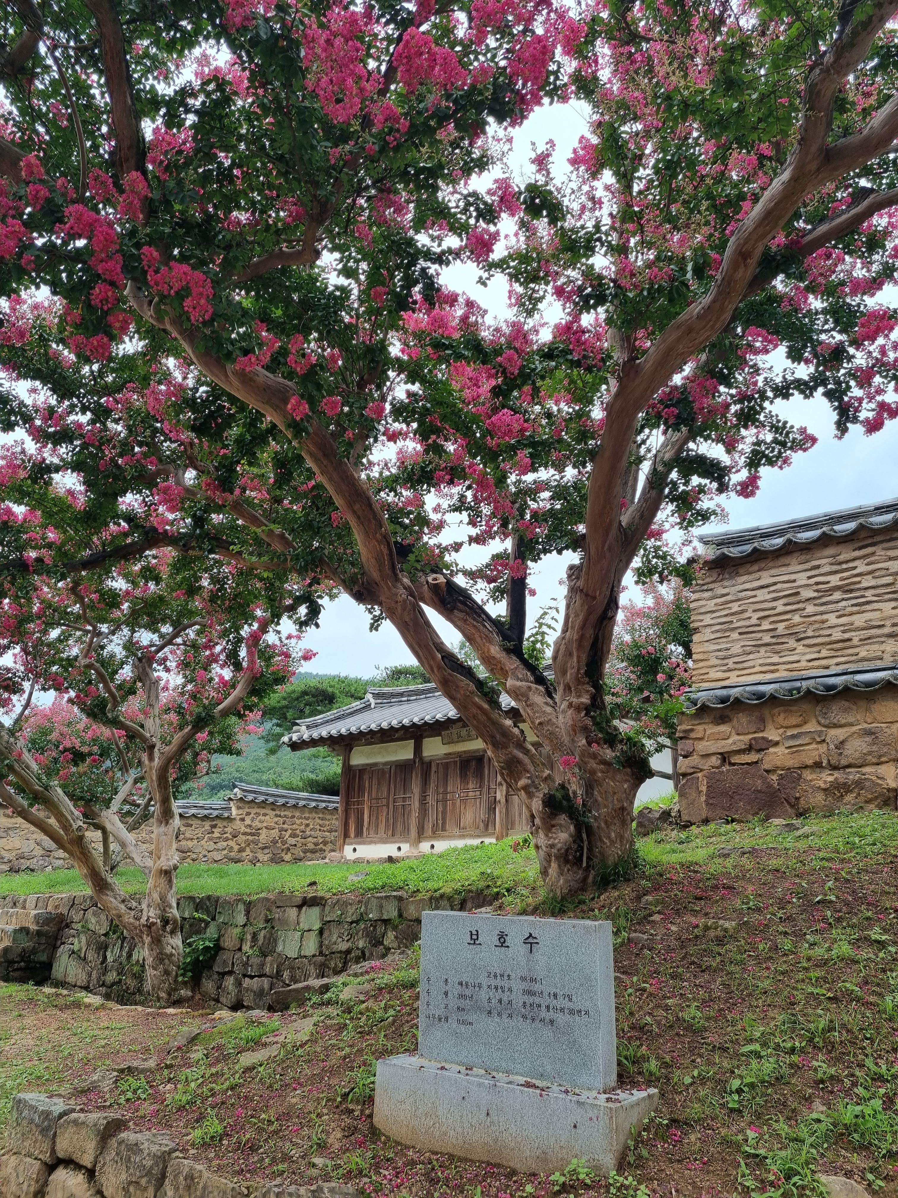 보호수 앞에서 오른쪽으로 고개를 돌리니 만개한 배롱나무를 볼 수 있었습니다.