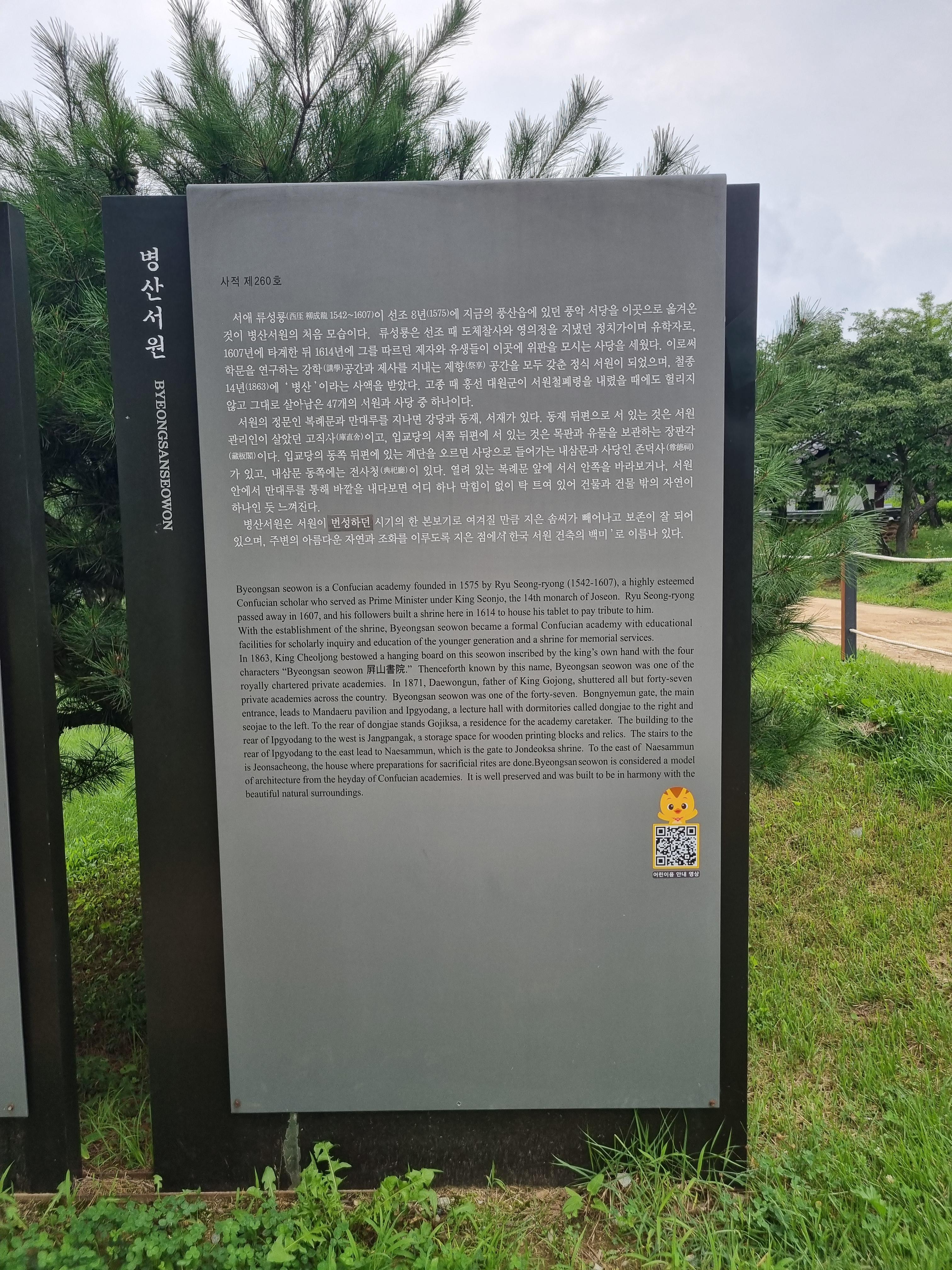 병산서원 입구에는 병산서원의 약도와 병산서원에 대한 설명을 보실 수 있습니다.