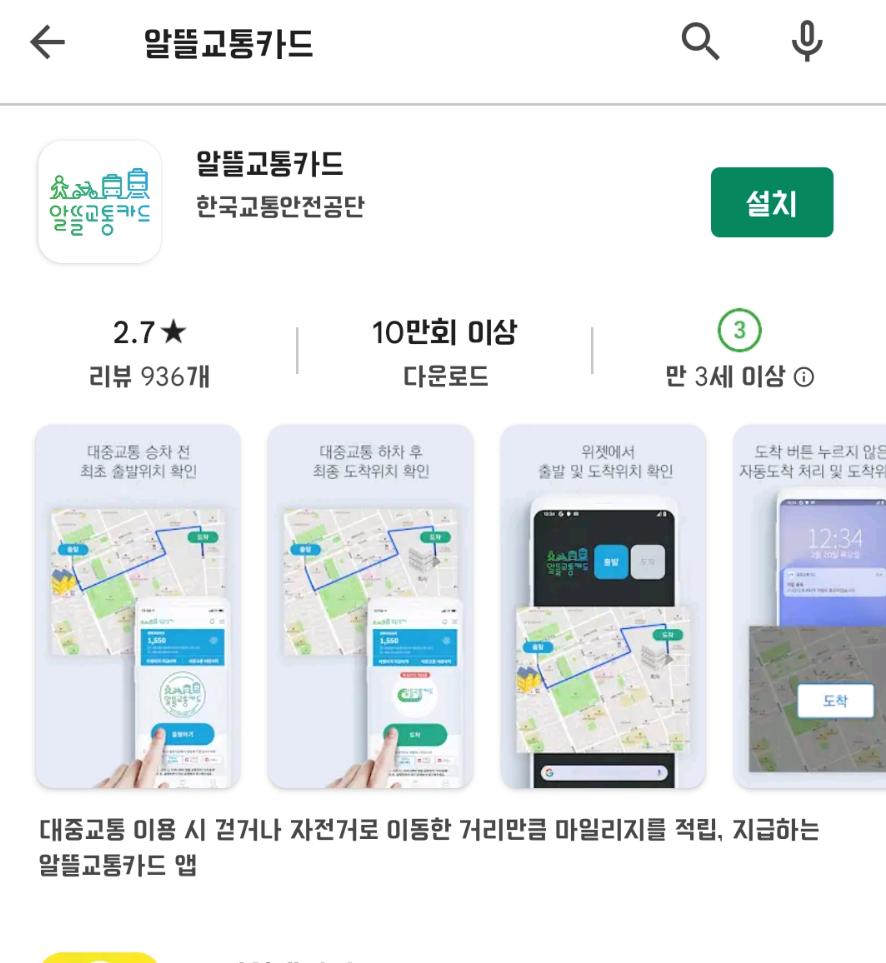 1. 구글 플레이스토어에서 "알뜰교통카드" 검색 후 설치한다.