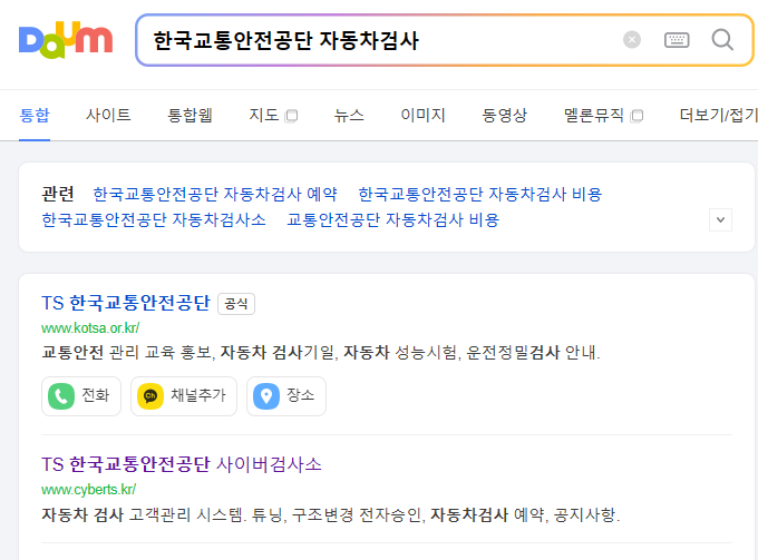 다음 홈페이지에서 자동차검사 예약을 검색해도 되지만 사이버검사소 바로 방문드리는 것을 추천드립니다.