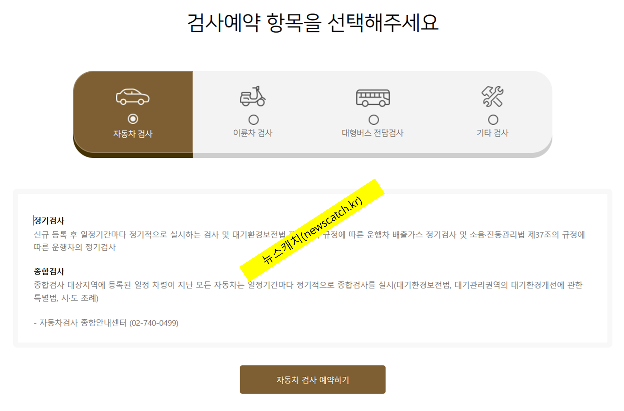 그리고 본인이 하려는 검사 항목을 선택하시면 됩니다. 대부분의 사람들은 자동차 검사를 진행합니다.