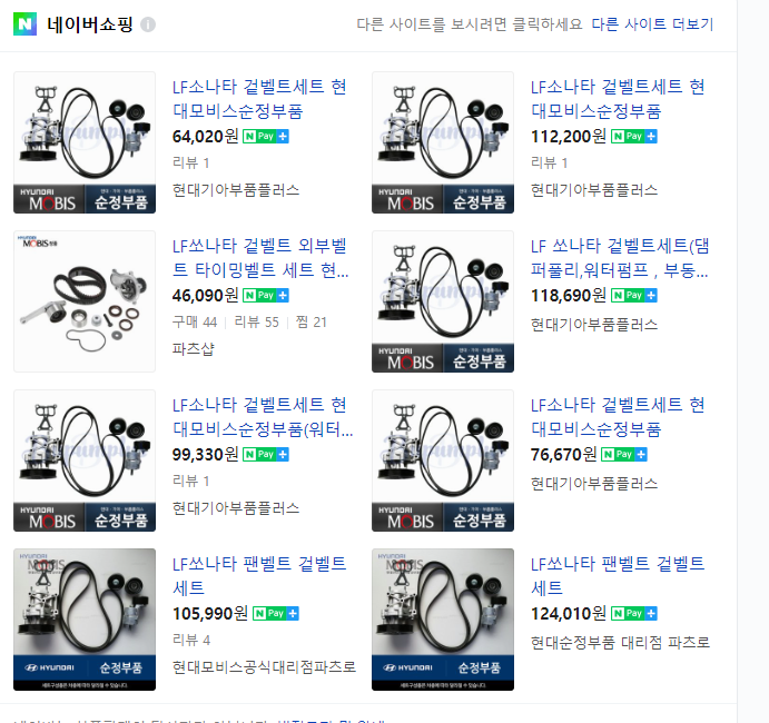 본인 차종으로 겉벨트 세트를 교환하게되면 위 부품들의 가격을 알수 있습니다.