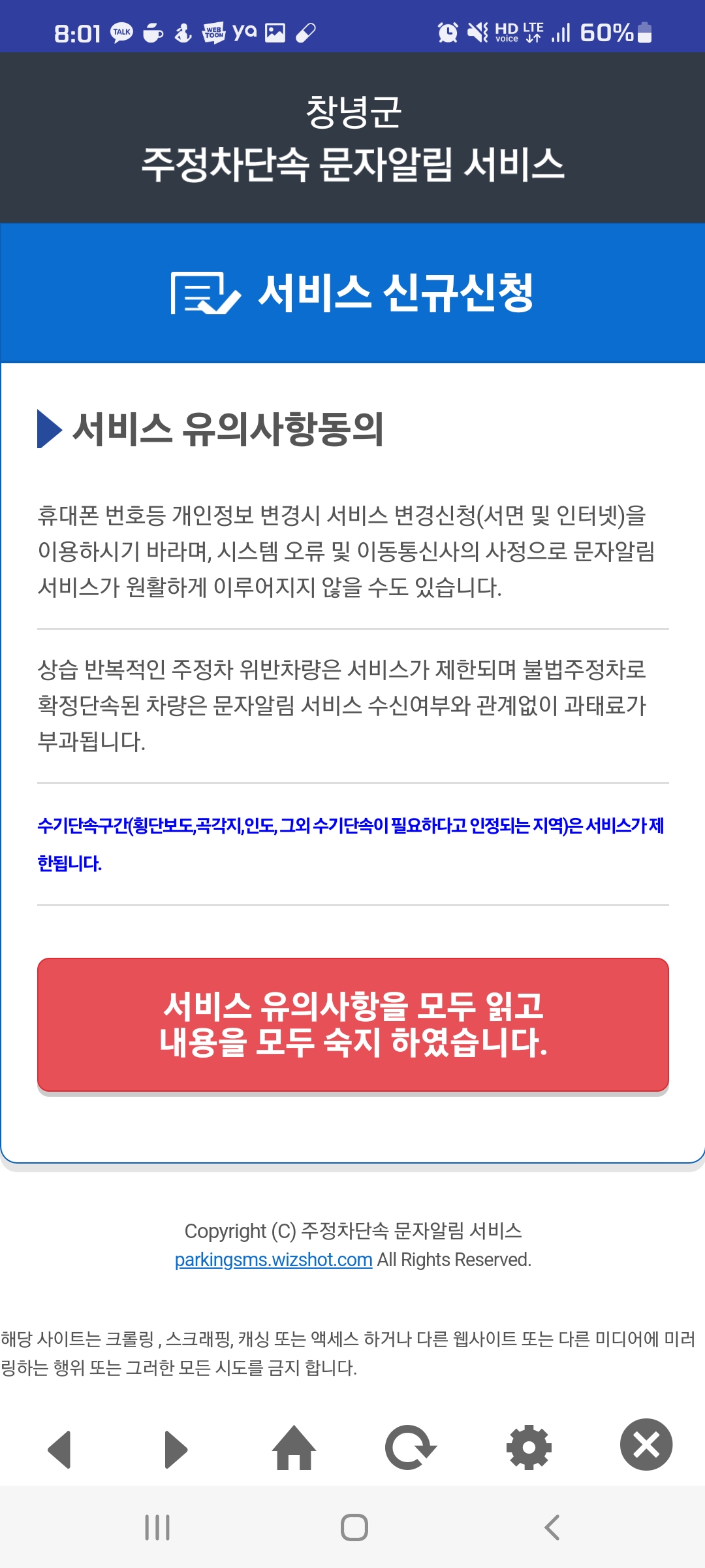 2. 주정차 단속 서비스 동의하기를 선택한다