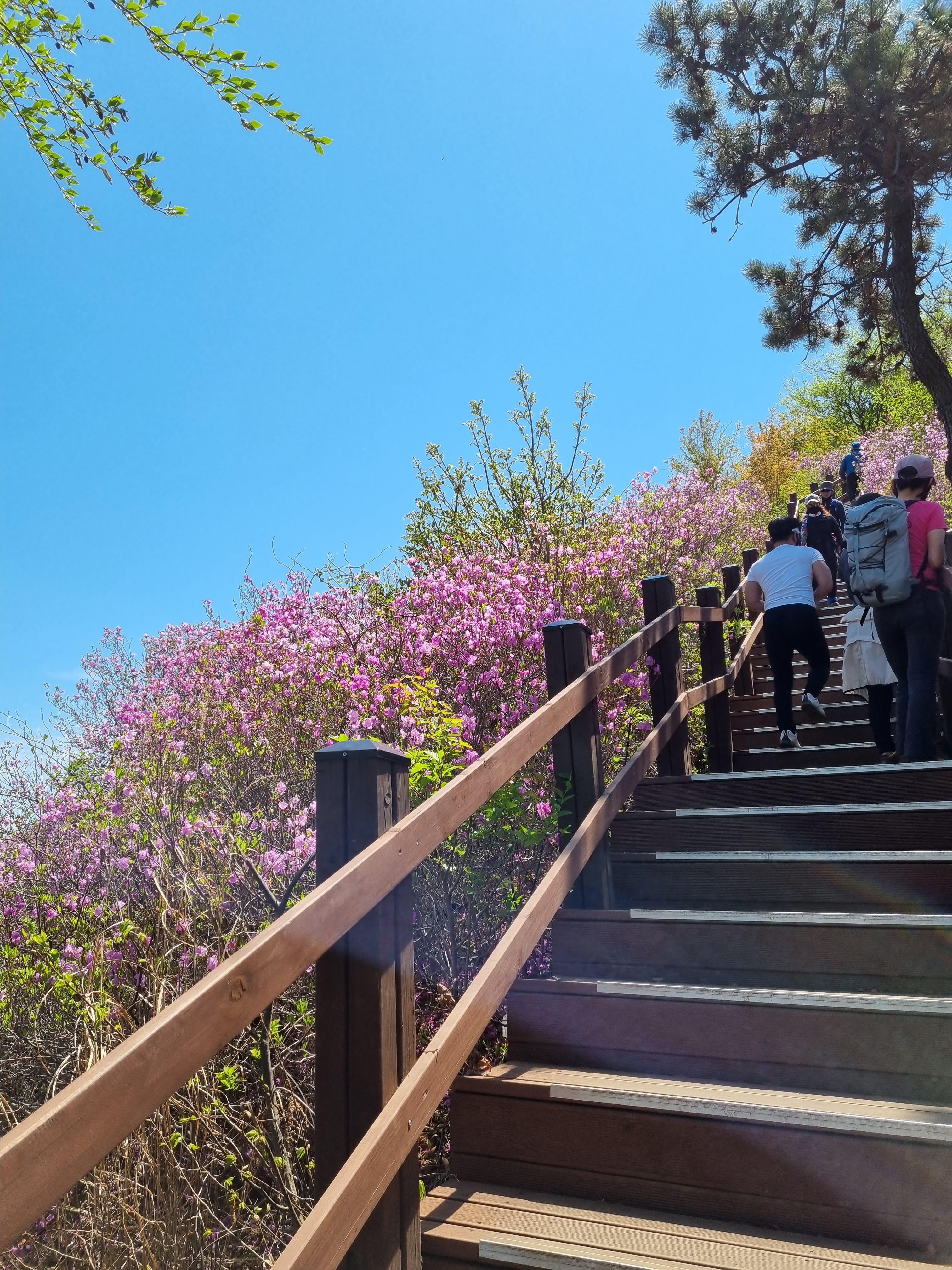어느 더 등산을 하다 보니 정상에 가까워졌고 진달래 군락을 확인할 수 있었습니다. 함안 경계부터 정상까지가 계단이 좀 많아 올라가는데 매우 힘들었습니다.