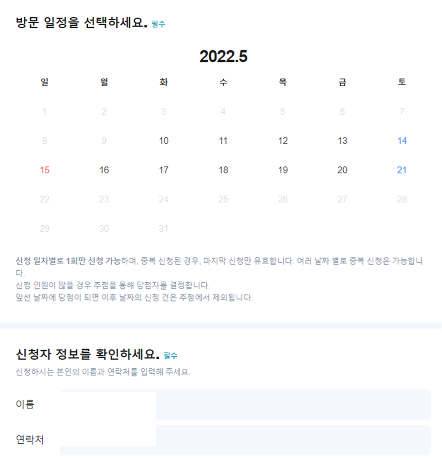 만약 당첨이 되지 않았으면 다른 날짜에 재신청이 가능하니, 포기하지 않고 계속 신청하시면 됩니다.