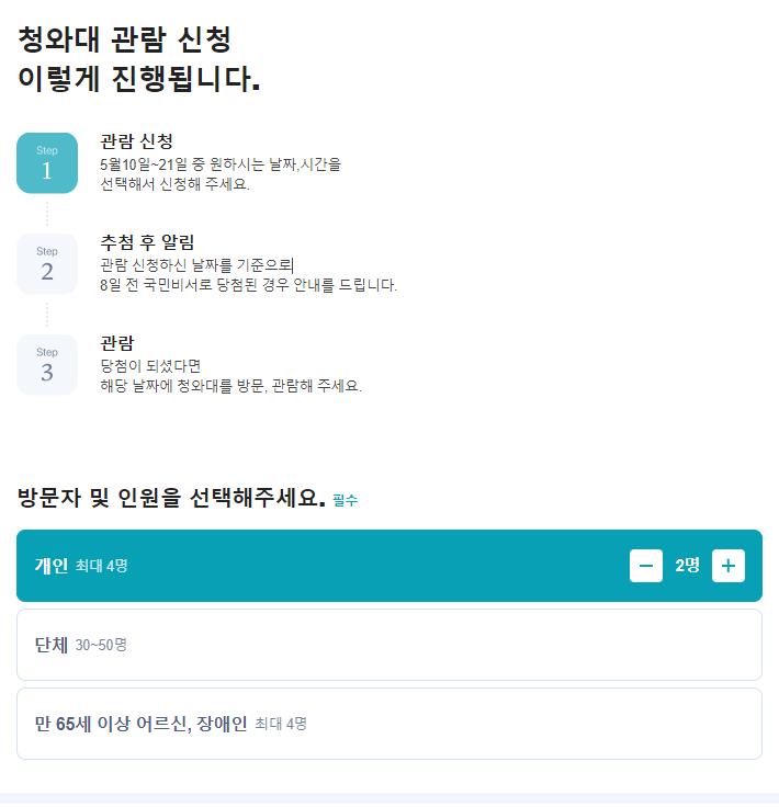 네이버 예약방법은 청와대 네이버 예약 사이트로 이동하여 신청이 가능합니다.