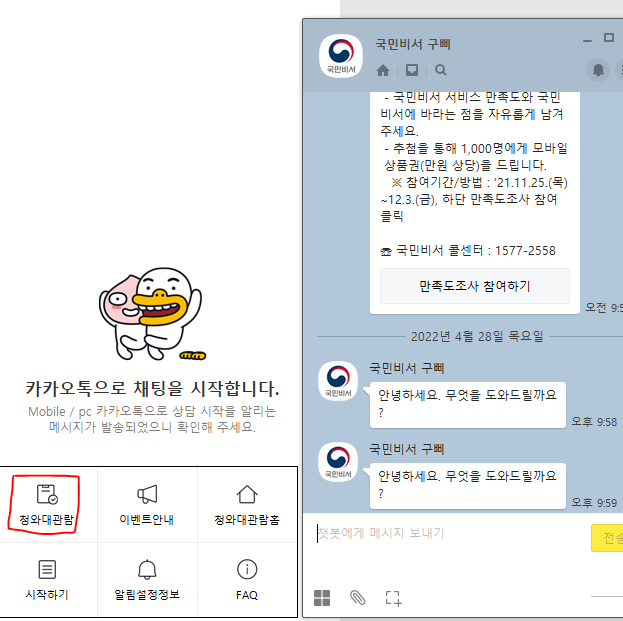 1. 카카오톡 국민 비서 구삐로 이동한다.