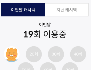 10회 단위로 캐시백이 지급되며 10회 결제시에는 2천 원 70회 결제 시에는 5만 원 캐시백이 되는 혜택이 있습니다.