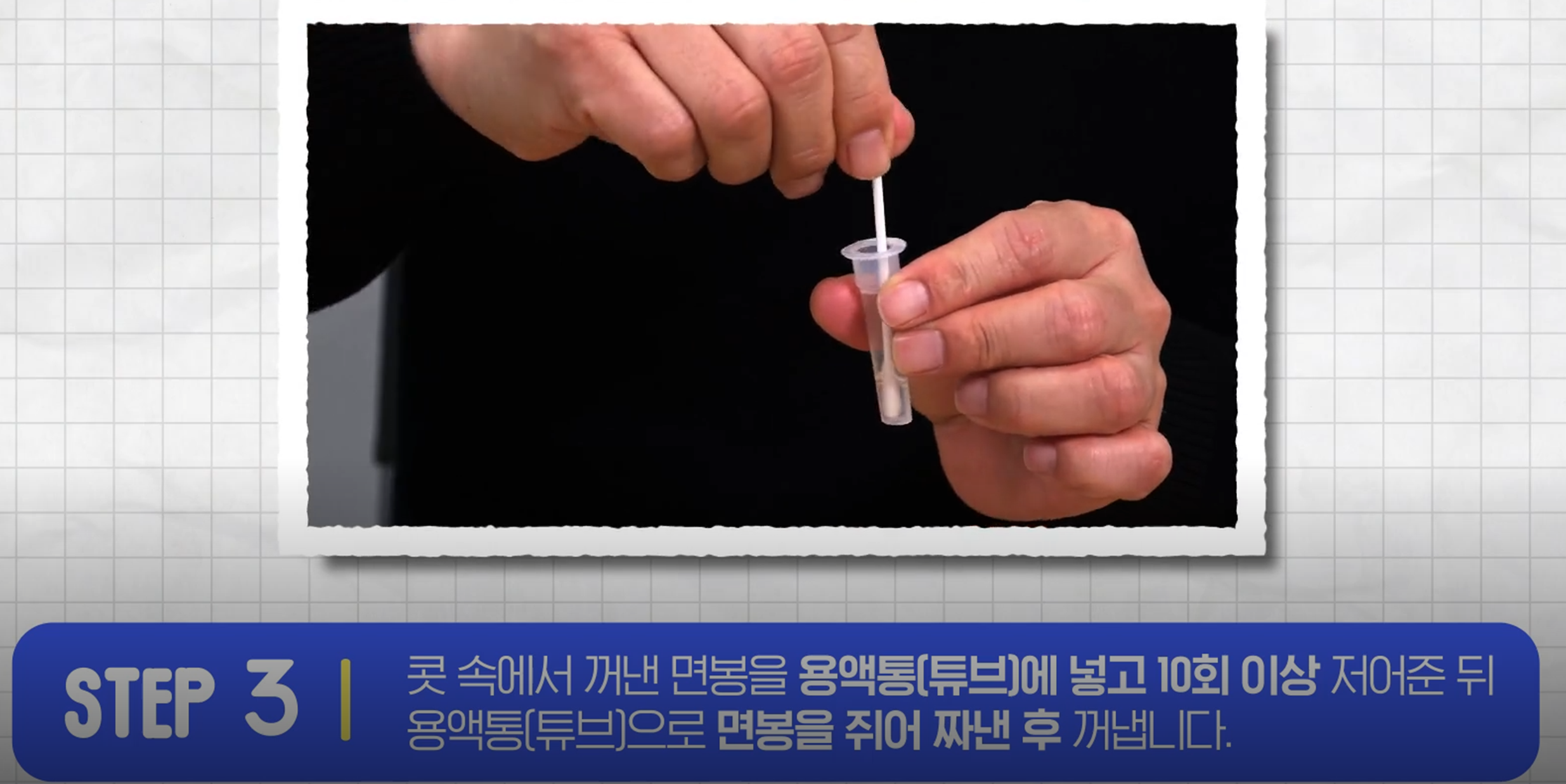3. 면봉을 용액통에 넣고 10회 이상 저어준다.