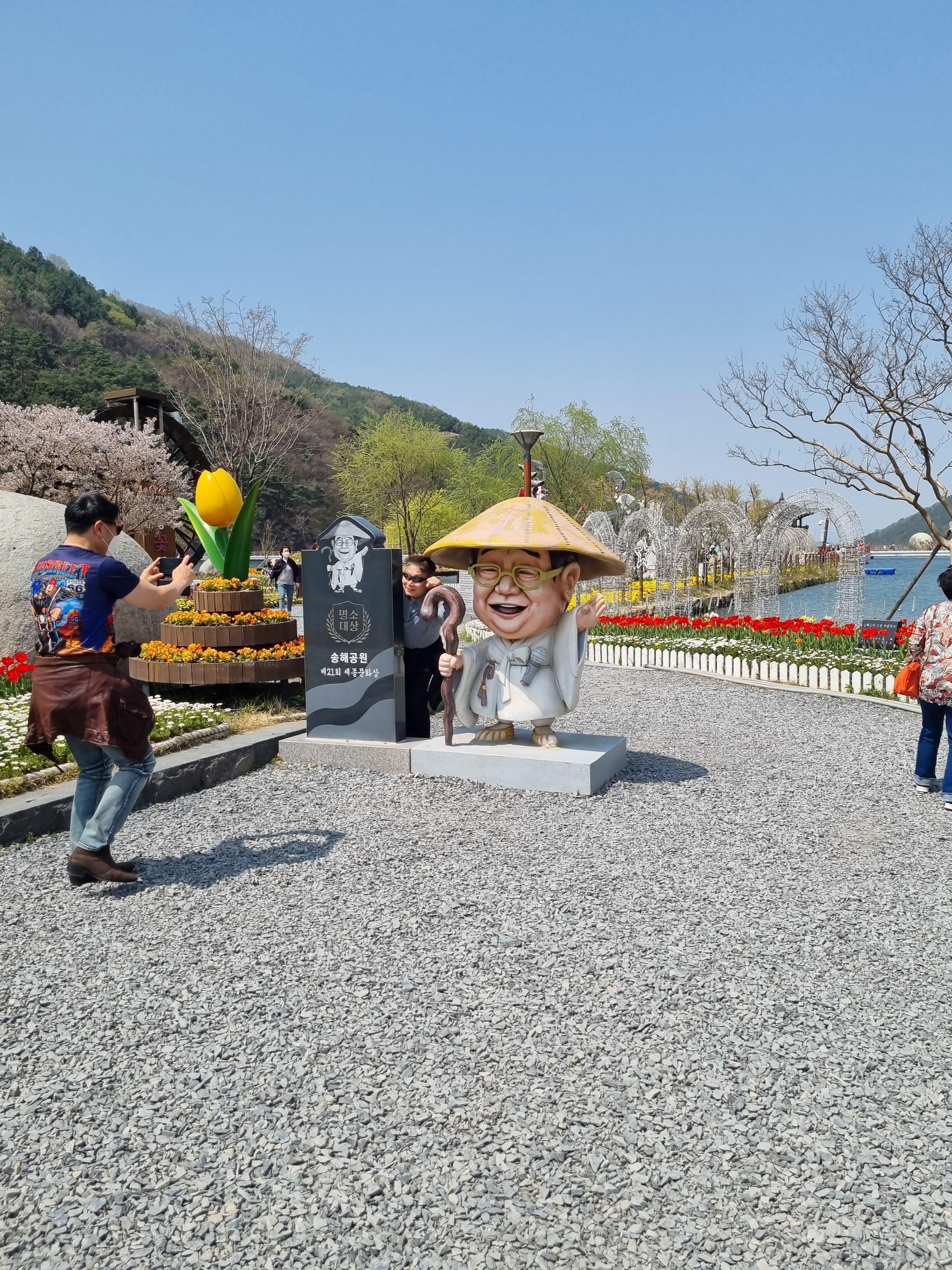 송해공원의 랜드마크인 송해 선생님의 모습을 본뜬 동상도 있고, 많은 분들이 사진을 촬영하고 있습니다.