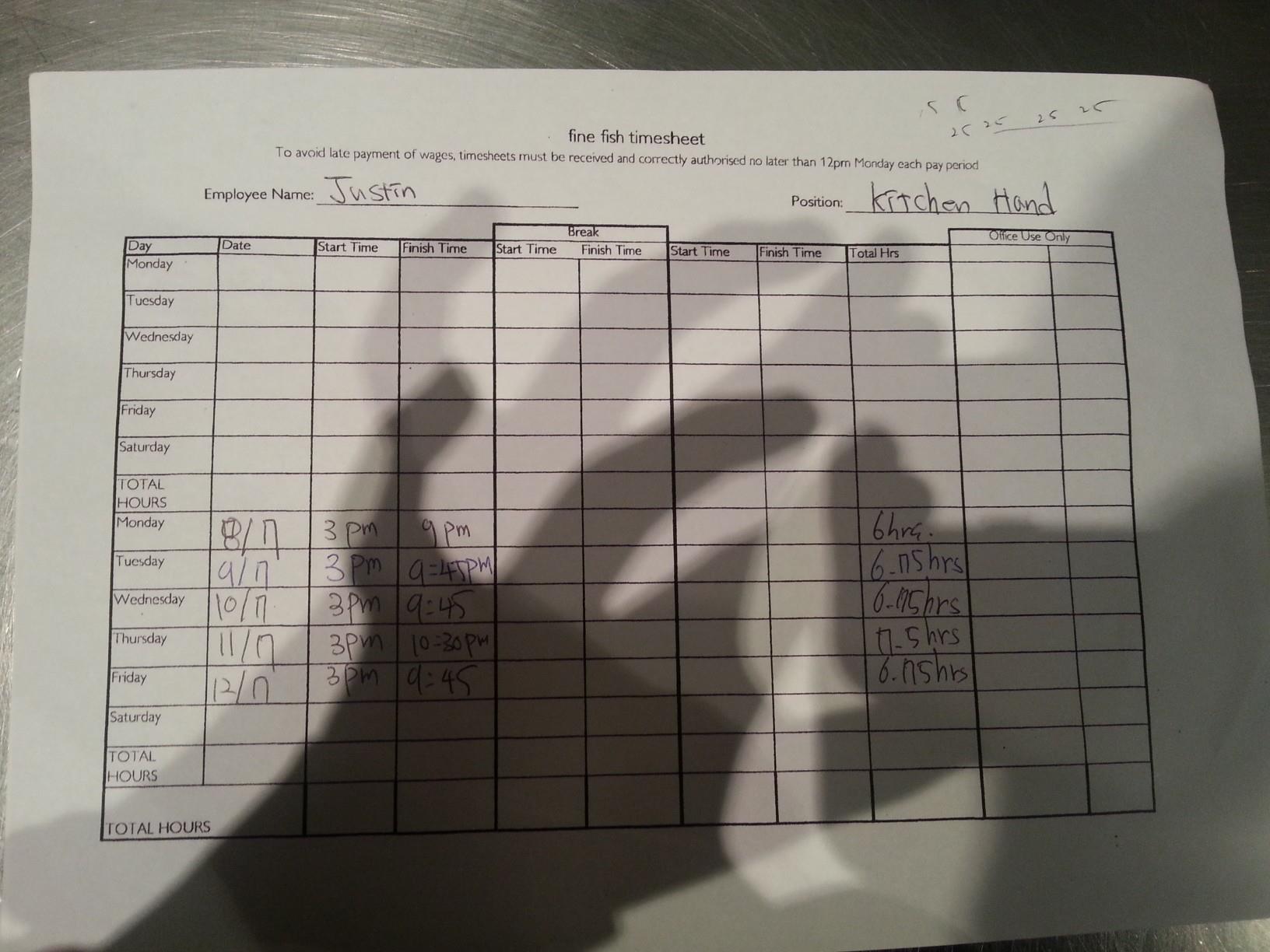 (호주는 주급단위로 돈을 지불해주지만 제가 일했던 식당은 2주 단위로 정산했습니다)